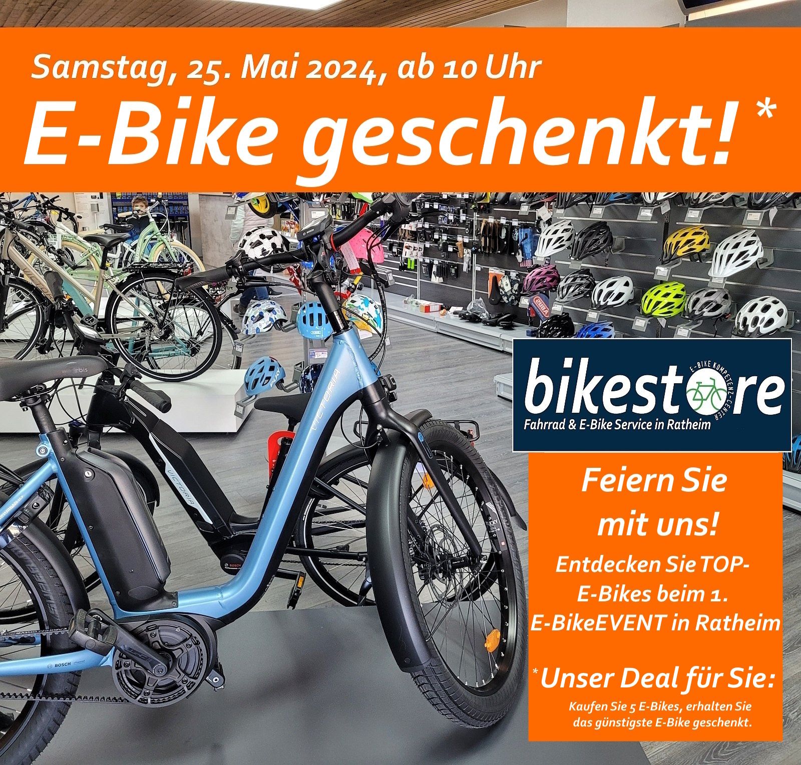 WIR FREUEN UNS AUF SIE: am Samstag, 25. Mai 2024, startet ab 10 Uhr das „1. E-Bike EVENT im bikestore Ratheim“. Der DEAL DES TAGES: Beim Kauf von 5 E-Bikes gibt es das günstigste E-BIKE GESCHENKT! Perfekt für Clubs, Vereine, Nachbarschaften und große Familien. Kulinarisches bieten David Maatz und „Die kleine Hexe“. Wo: bikestore Ratheim, Myhler Straße 12, 41836 Hückelhoven-Ratheim.