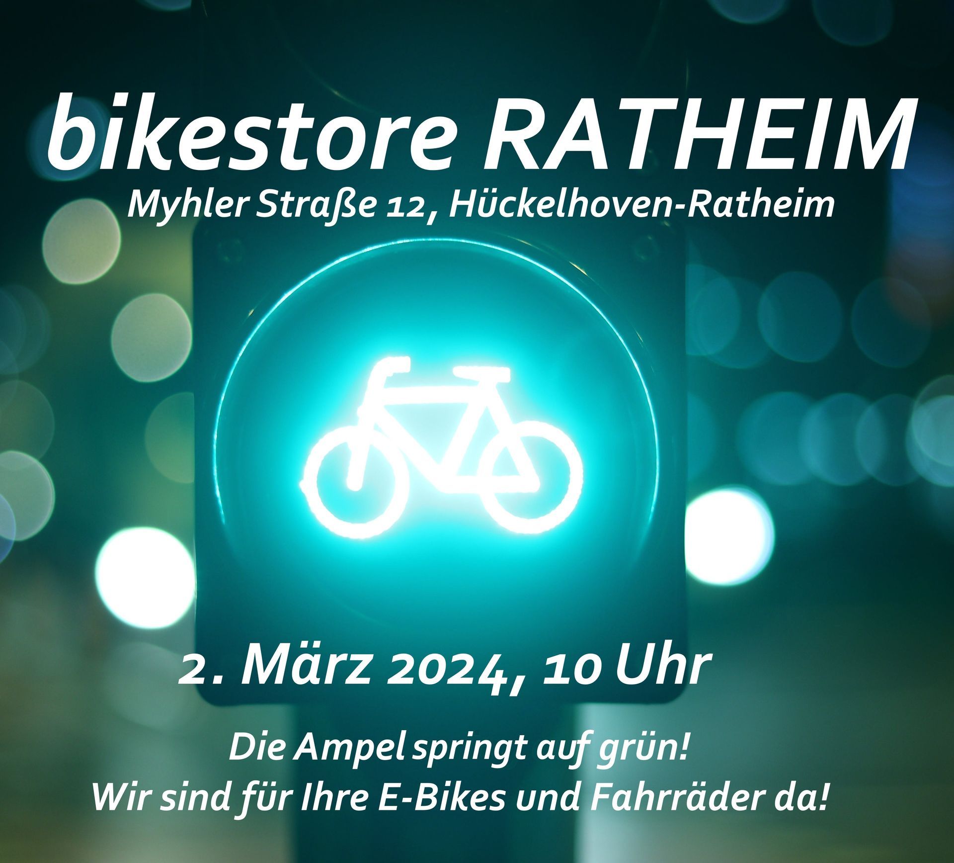 Zentral in Hückelhoven-Ratheim gelegen, wird der bikestore.nrw zu Ihrem neuen Lieblingsort für Sie und Ihr E-Bike / Fahrrad. Denn beim bikestore.nrw in Ratheim, Myhler Straße 12, ist Ihr Zweirad in den besten Händen: wir sind Ihr Ansprechpartner rund ums E-Bike/Fahrrad. Wir freuen uns auf Sie und Ratheim! Am Samstag, 2. März 2024, feiern wir ab 10 Uhr unsere große Neueröffnung! Lassen Sie sich überraschen, was wir für Sie vorbereitet haben!